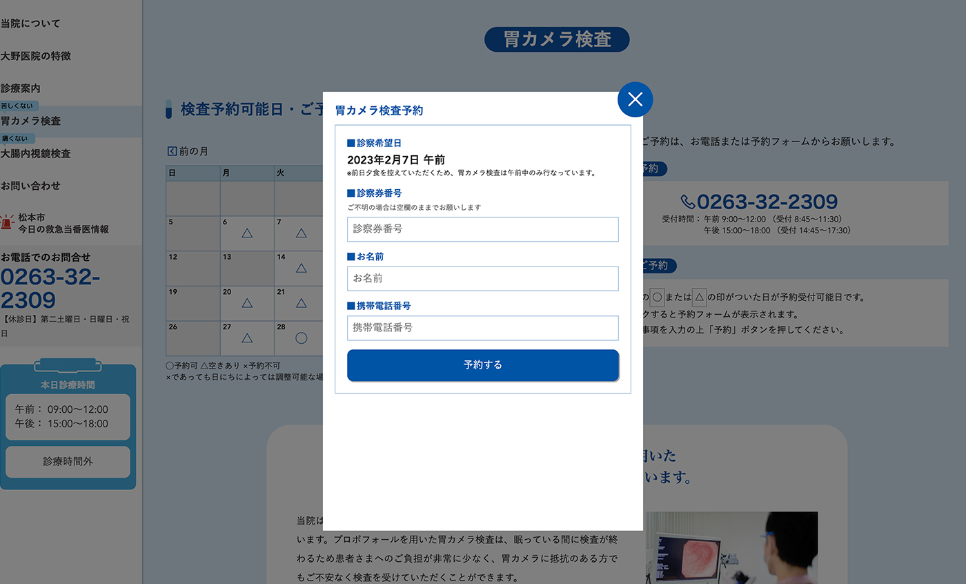 クリニックウェブサイト+予約システム