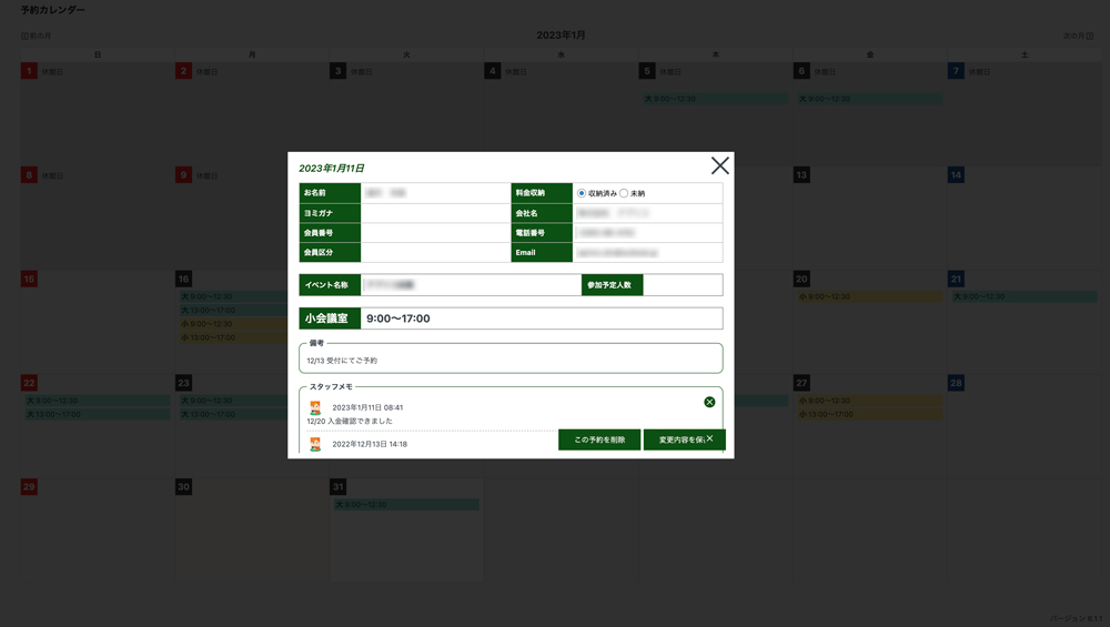 コワーキングスペースウェブサイト+予約+入退出管理